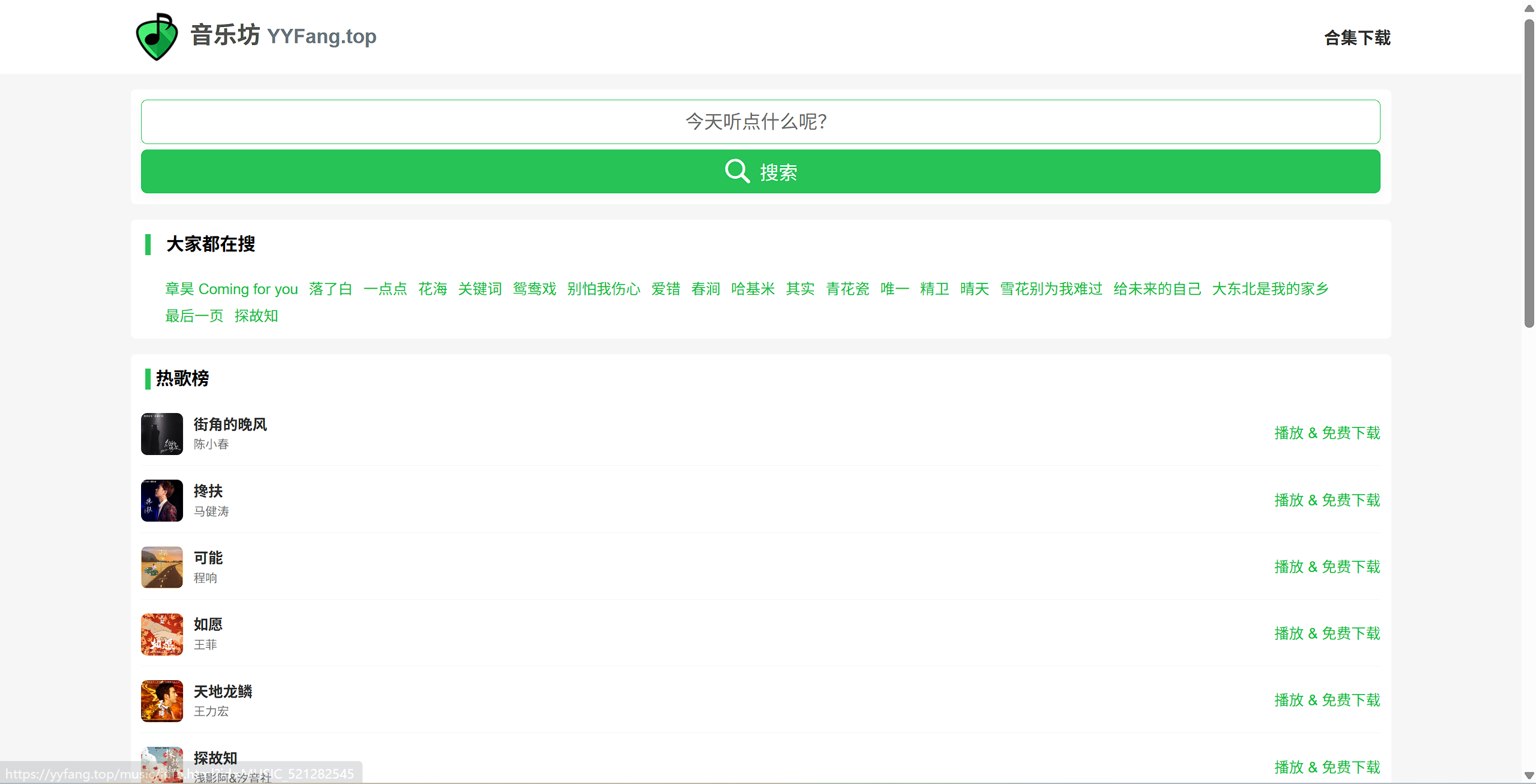 音乐坊-无损音乐歌曲下载网站 2025-12-26 mp3歌曲免费下载网站,可以在线免费全网音乐免费下载,无损音乐下载。包含抖音歌曲、欧美歌曲、港台歌曲、车载DJ音乐、经典老歌等。曲库完整,每日更新,是一个音乐爱好者的资源分享的歌曲下载网站。官网地址:https://yyfang.top/